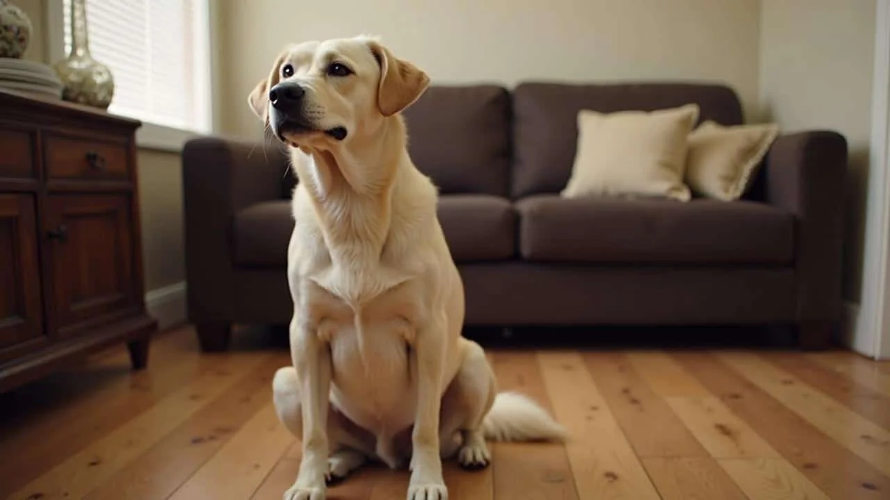 When she walked over to peek through the window, her heart dropped. There, sitting perfectly still in the middle of an empty living room, was a brown dog positioned exactly where a couch used to be. The rectangular outline on the carpet told the whole story.
