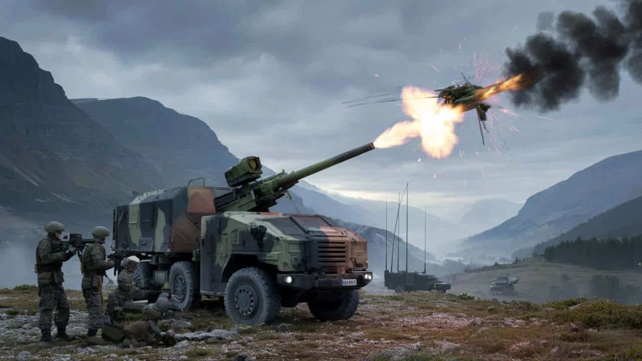 The footage released by the French Army is stark and immediate. A camouflaged tactical truck stops on rocky Alpine terrain, its turret swiveling with mechanical precision. Advanced sensors sweep the sky, hunting for threats. Then, in short, violent bursts, the gunner unleashes 20mm high-explosive rounds at fast-moving shapes overhead.